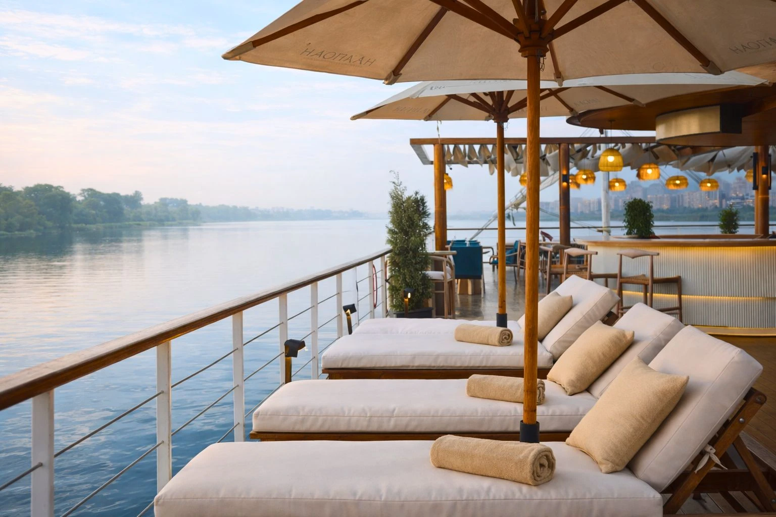 Indulge yourself in a timeless luxury on the Hathor Dahabiya Nile Cruise. Enjoy the luxurious cabins that blend modern comfort with timeless Egyptian charm. From panoramic Nile view suites to gourmet fine dining and tranquil spa moments, every detail of your journey is crafted for relaxation, exclusivity, and authentic cultural elegance. Enjoy the ultimate Luxury Dahabiya Nile Cruise and feel the charm of a Private Nile cruise Egypt.
