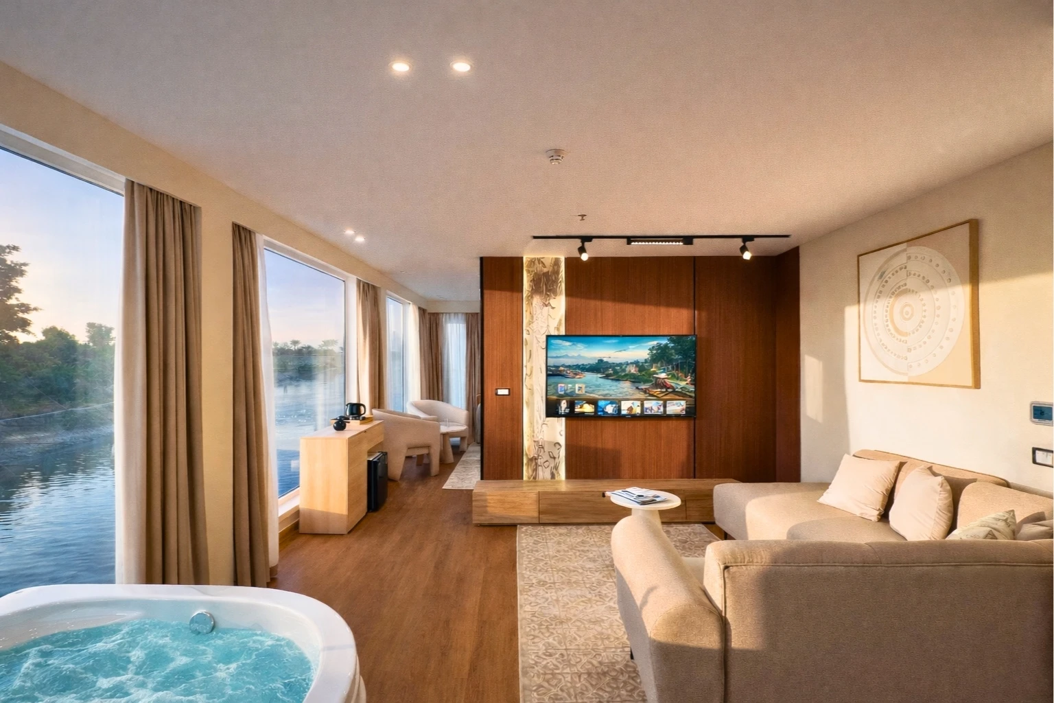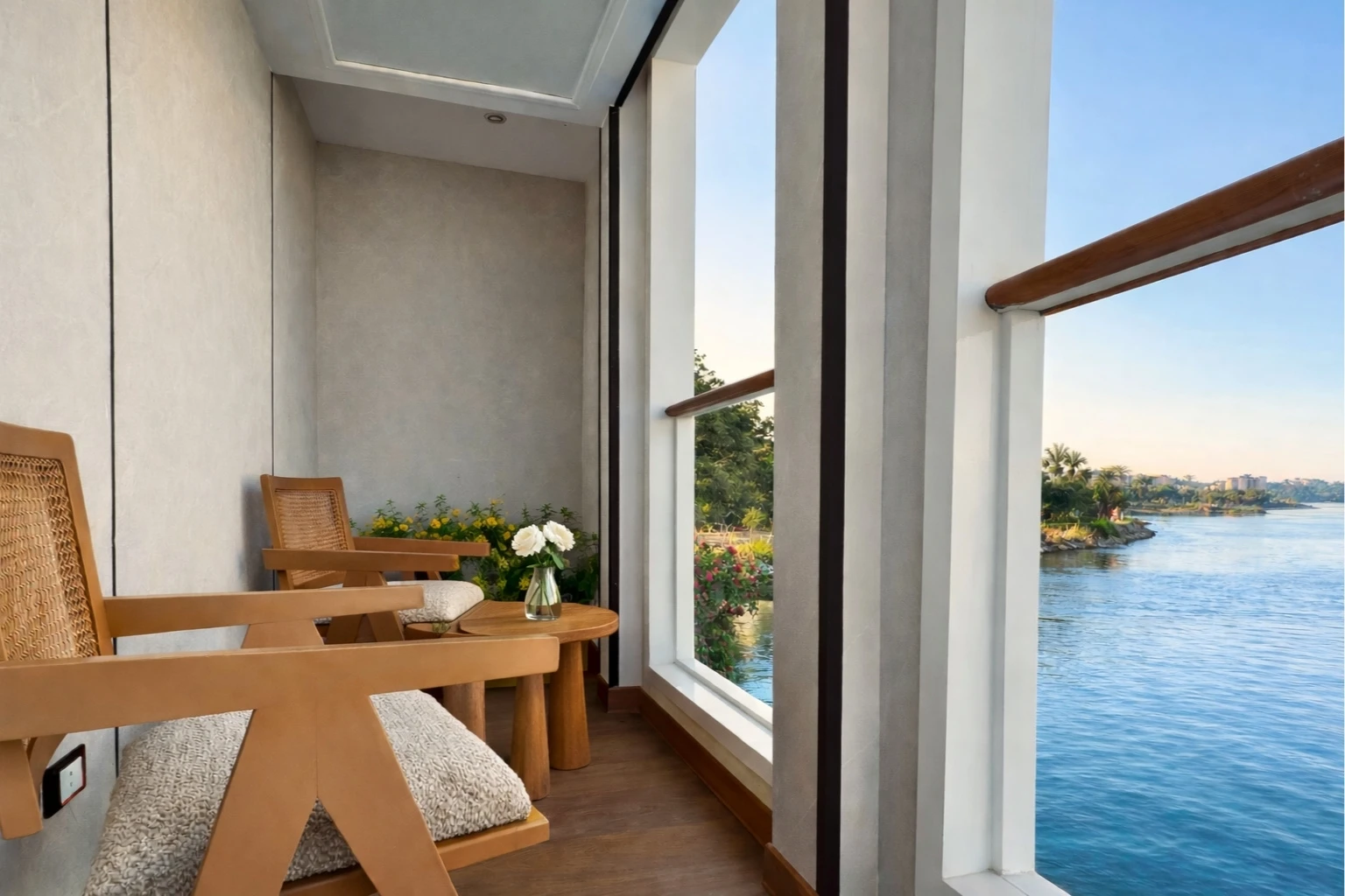 Experience elegant comfort and thoughtful design in our Accessible Hathor Suite aboard Hathor Dahabiya luxury privilege on the Nile for true Luxury Dahabiya Egypt and an unforgettable Luxury Dahabiya Nile Cruise experience.